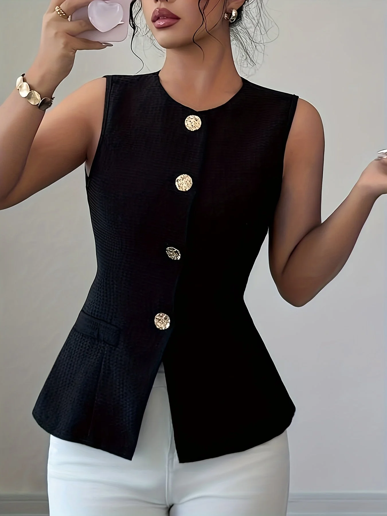 Gilet élégant sans manches pour femme, style chic et moderne, idéal pour le bureau ou les sorties