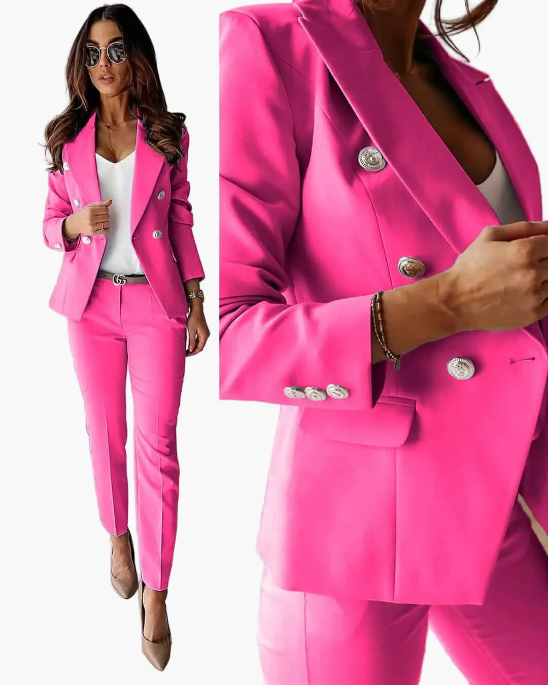 Tailleur pantalon élégant pour femmes, style business chic, ensemble blazer et pantalon pour bureau et occasions formelles