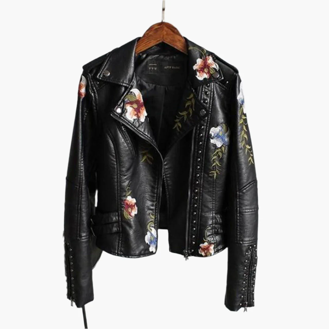 Veste Motard Femme Style Biker Élégant avec Broderie Florale